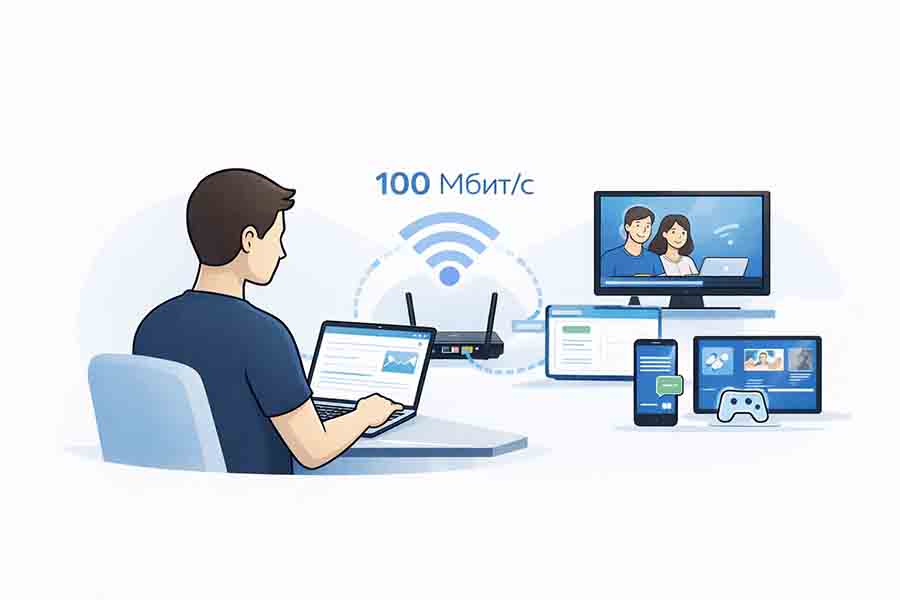 Но здесь есть важная поправка: 100 Мбит/с — это не синоним комфорта в любой квартире. Если дома несколько человек, слабый роутер, плотная вечерняя нагрузка и постоянные параллельные задачи, ощущение может быть уже другим. Поэтому 100 Мбит/с — это часто достаточный уровень для умеренного использования, но не универсальная норма “на все случаи”.